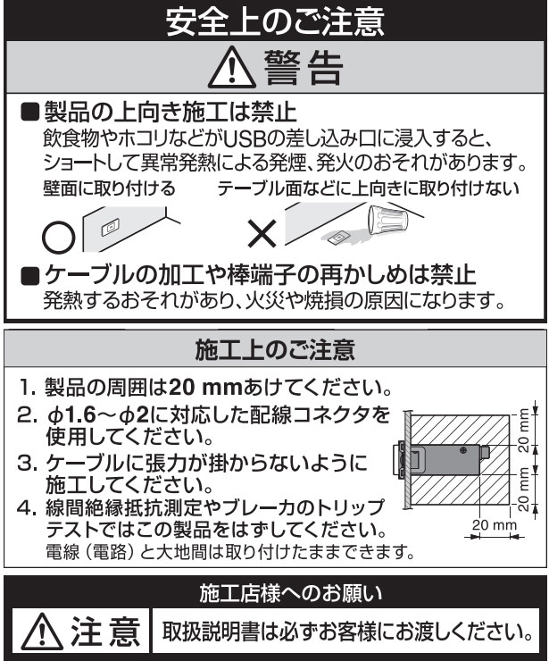 製品の上向き施工は禁止