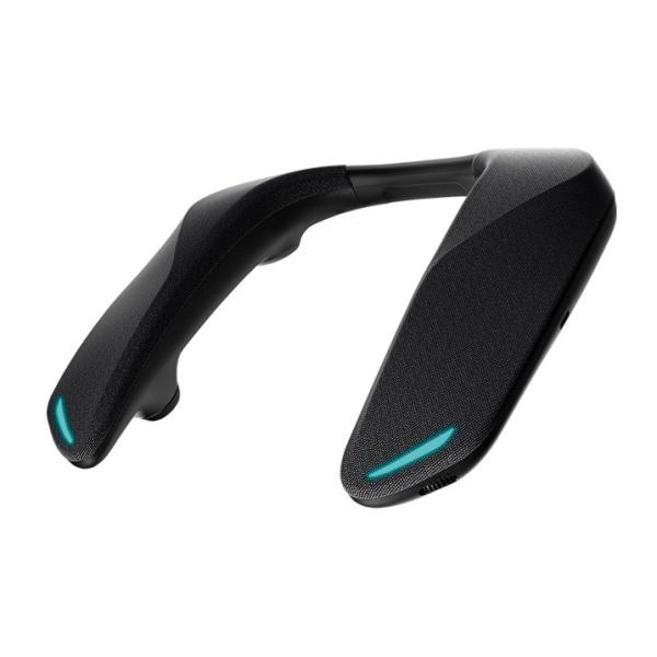 - 4つのスピーカーからなる迫力のサラウンドで、人間工学に基づいた形状と操作性を両立するワイヤレスネックスピーカーシステム