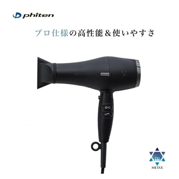- メーカー希望小売価格はメーカーサイトに基づいて掲載していますお取り寄せ日数は、概ね5~7日程度かかります。 【商品説明】 毎日『サロン級のまとまり』を手に入れる、美容師が考えたドライヤー マイナスイオンとファイテン独自の光テクノロジーを搭載し、ヘアドライ、ブローのたびに触っていたくなる輝くサラツヤ髪へ。 内部のファンのブレを職人が1つずつ微調整を加えることで静音化。 3段階の温度調節機能と、2段階の風量調節機能搭載。大風量で髪を乾かすだけでなく、朝のセットやスタイリングなど、シーンに合った最適なケアが可能に。 さらにブローがしやすくなる「ノーマル」と「ワイド」2種類のノズル付き。長時間の使用でも手が疲れにくい軽量設計。 【サイズ】 H 約210mm×W 約88mm×D 約205mm コード長:3m 【カラー】 マットブラック 【素 材】 本体:ナイロン66(PA66) 【重 量】 610g(本体:390g コード:220g) 【技 術】 メタックス 【原産国】 中 国 【商品詳細】 電源:AC100V (50/60Hz共用) 消費電力:1200W ※注意※海外ではご使用いただけません。