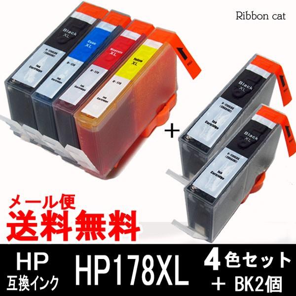 HP178XL (増量タイプ) HP 互換インクカートリッジ 4色セット+ブラック2個(計6個)