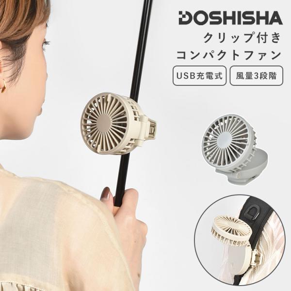 ミニ扇風機 クリップファン 日傘 ベビーカー USB 充電式 ハンディファン ドウシシャ FSA-61B DOSHISHA 静音 コードレス DCモーター 角度調整