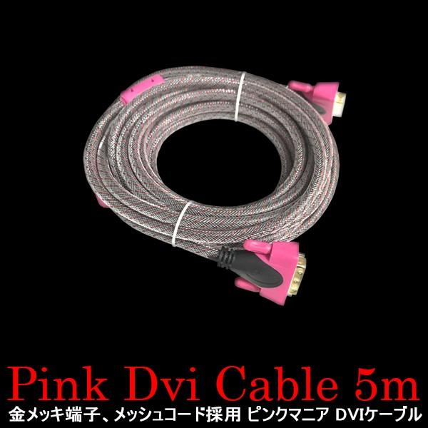ピンクマニア DVIケーブル 5m デュアルリンク 金メッキ 端子 オス メッシュ pc cable pink