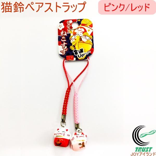 なかよし 猫鈴ペアストラップ ピンク/レッド 604-968 ネコポス対応 招き猫 福 ペア 和物 日本 お土産 プレゼント かわいい 2個セット