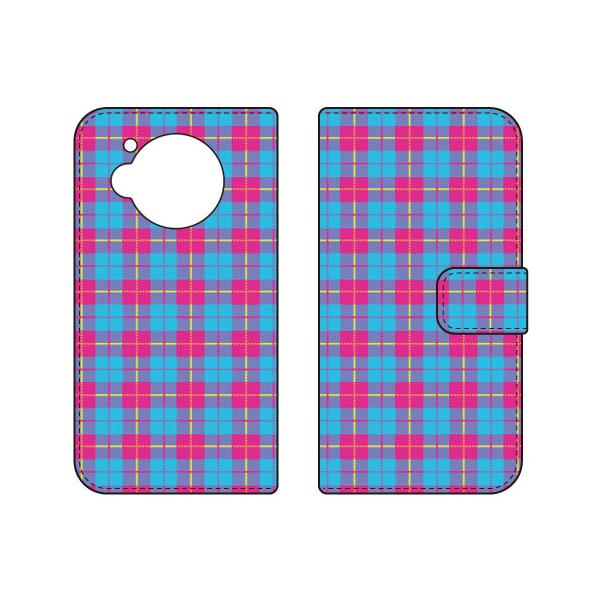 手帳型スマホケース チェック柄 (BLUE×PINK) (受注生産) Cf LTD AQUOS R7 SH-52C アクオス R7 SH-52C