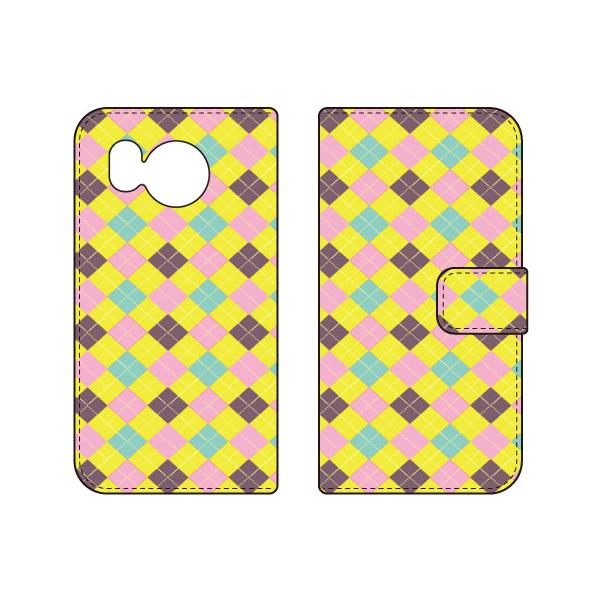 手帳型スマホケース チェック柄 (YELLOW×PINK) (受注生産) Cf LTD AQUOS sense7 SHG10 SH-53C アクオス センス7 SHG10 SH-53C