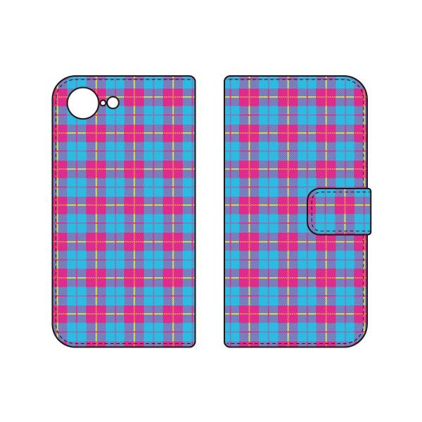 手帳型スマホケース チェック柄 (BLUE×PINK) (受注生産) Cf LTD iPhone 16e