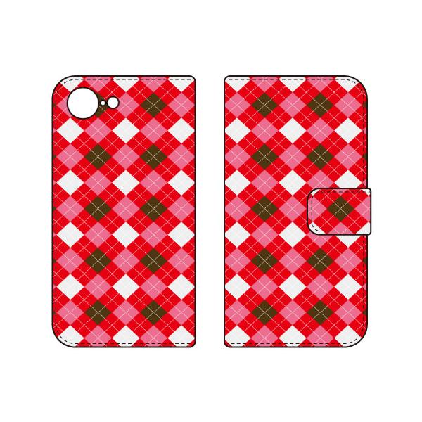 手帳型スマホケース チェック柄 (RED×PINK) (受注生産) Cf LTD iPhone 16e