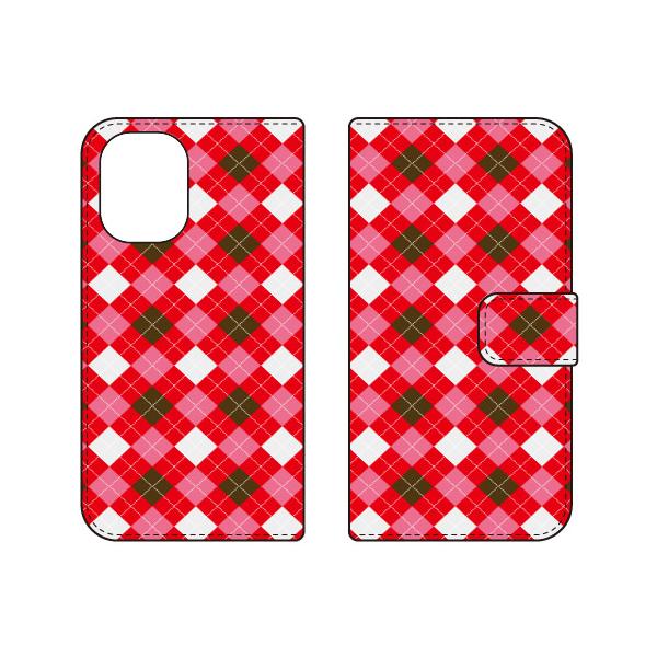 手帳型スマホケース チェック柄 (RED×PINK) (受注生産) Cf LTD iPhone 16