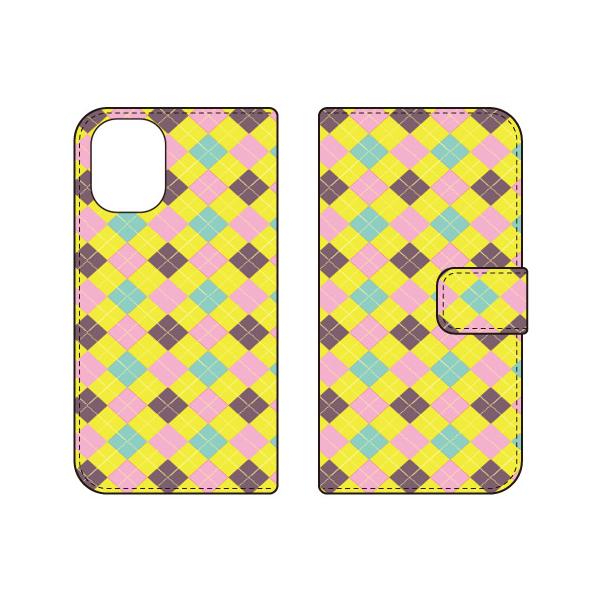 手帳型スマホケース チェック柄 (YELLOW×PINK) (受注生産) Cf LTD iPhone 16 Plus