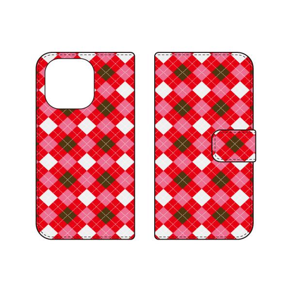 手帳型スマホケース チェック柄 (RED×PINK) (受注生産) Cf LTD iPhone 16 Pro