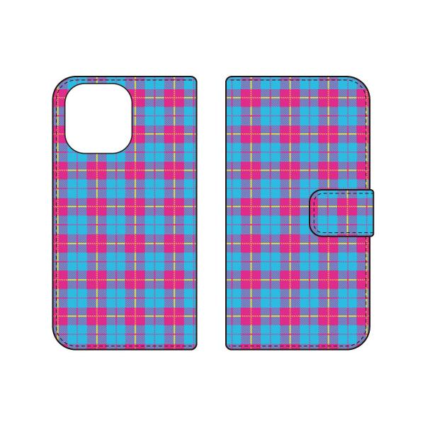 手帳型スマホケース チェック柄 (BLUE×PINK) (受注生産) Cf LTD iPhone 16 Pro Max
