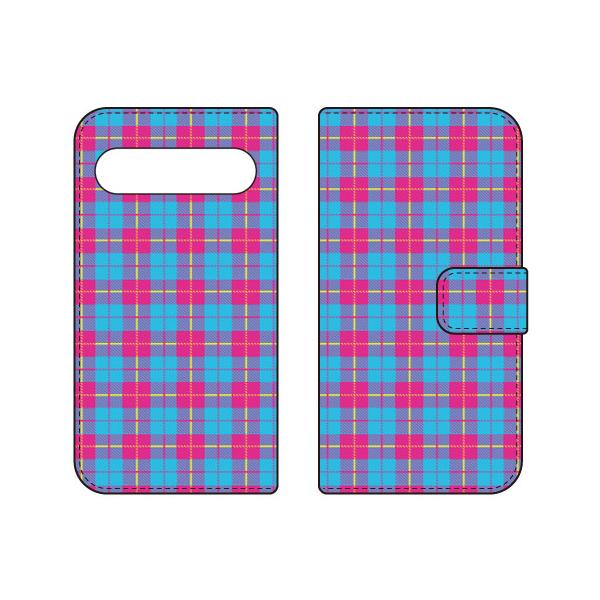 手帳型スマホケース チェック柄 (BLUE×PINK) (受注生産) Cf LTD Xperia 10 VII SOG16 SO-52F A502SO