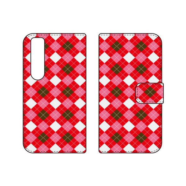 手帳型スマホケース チェック柄 (RED×PINK) (受注生産) Cf LTD Xperia 1 VII SOG15 SO-51F A501SO