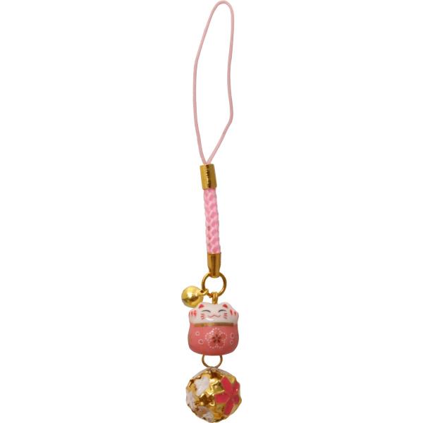 まつみ工芸 根付け 携帯ストラップ 招福桜まねき猫根付ストラップ ピンク