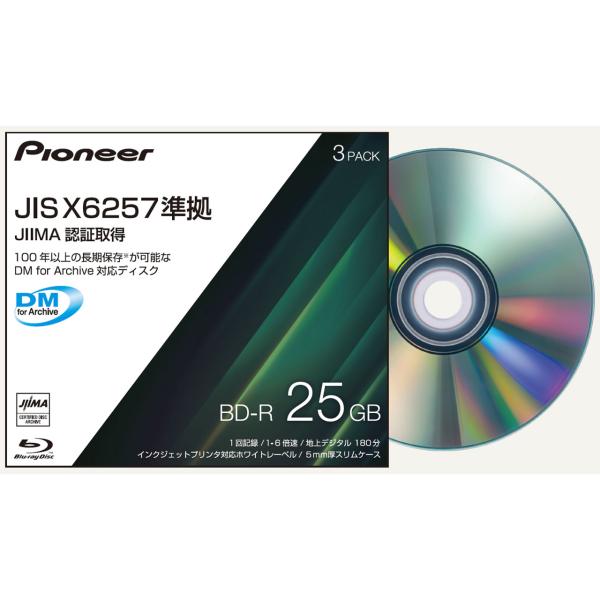 パイオニア Pionee DM for Archive対応BD-R 6倍速 25GB IPS-BD11J03P アーカイブ対応 JIS X6257準拠 JIIMA認証 3PACK 新品