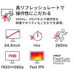 [画面] 24.5型 / 280Hz / 1920×1080 / フルHD / IPSパネル / 非光沢 / HDR / 1ms(GTG) / sRGB 99% / ベゼルレス
