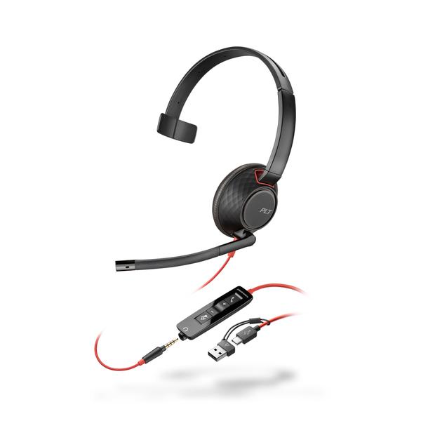 HP Poly Blackwire 5210 USB-C+USB-A 変換アダプタ付 片耳 有線 ノイズキャンセリングマイク搭載 レザレットイヤークッション 8X230AA