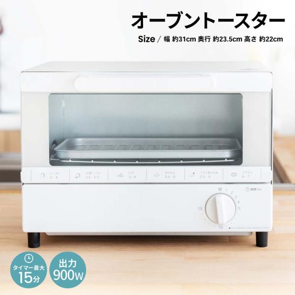 - 【特長】●シンプルなダイヤル操作●便利な15分タイマー●食パン2枚焼き●お餅やピザに便利、受け皿トレー付き●掃除しやすい全面パンくずトレー【仕様】●定格電圧:100V●定格消費電力:900W(50/60Hz)●庫内寸法(約):幅26×奥行18×高さ19.4(cm)●外形寸法(約):幅31×奥行23.5×高さ22(cm)●電源コード:1.1m●質量:約2.6kgo家電 o調理家電 oオーブン・レンジ o新生活・オーブン・レンジ oおすすめ家電 oひとり暮らし oホワイト