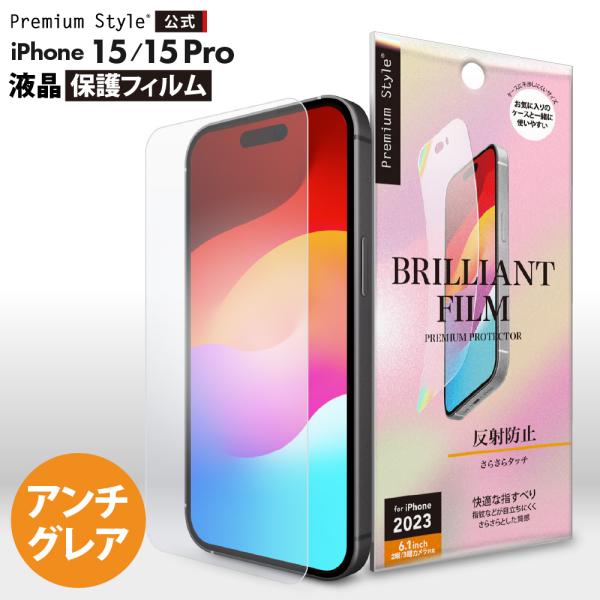 指紋が目立ちにくく、指すべりがなめらかな防指紋・アンチグレア加工された iPhone15/iPhone15Pro 液晶保護フィルム BRILLIANTモデル(女性用パッケージ)です。
