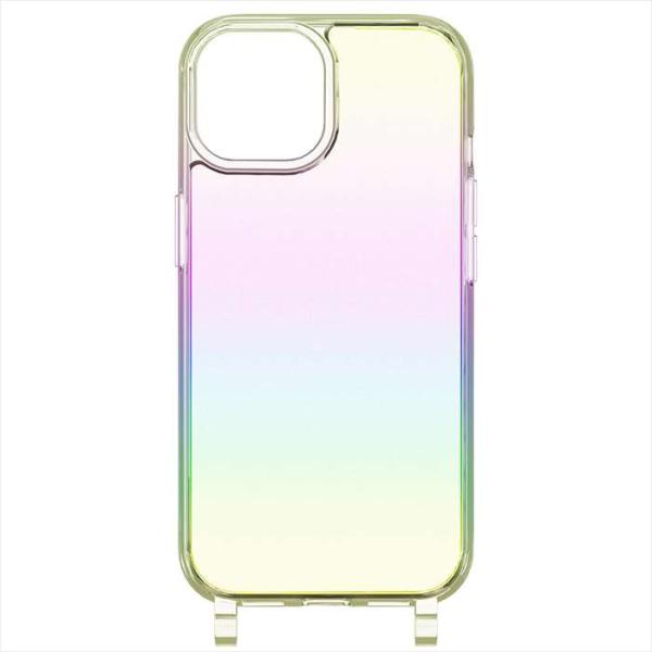 iPhone15 Plus 対応 ショルダーストラップホール付クリアハイブリッドケース オーロラ iPhoneカバー