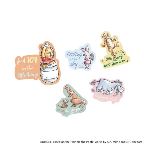 ステッカー キャラクター ディズニー プーさん ピグレット ティガー シール スマホ かわいい スマホステッカー イーヨー カンガ 5枚 5種 耐水 耐光 シンプル