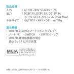 コンパクトサイズでPower Delivery(PD)45W出力に対応したUSB-Cポート搭載のUSB PD電源アダプタです。従来のシリコン半導体よりも充電効率の良い窒化ガリウム半導体を採用し、高出力でも発熱を抑え、小型化及び軽量化を実現しました。一般的な5W充電器と比べ最大3倍の速さでの急速充電が可能となります。対応するノートPCやスマートフォン・タブレット充電に最適。また、SWITCHドックにも対応しています。収納できるコンセントプラグで持ち運びにも便利です。100V〜240Vまでの海外対応。