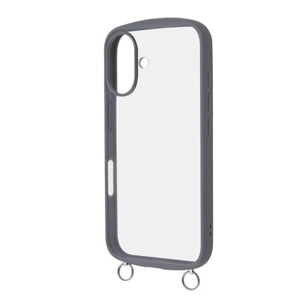 Ray Out レイアウト iPhone 16 Like standard Puffull 耐衝撃 バンパー ストラップ金具付き ハイブリッドケース グレー