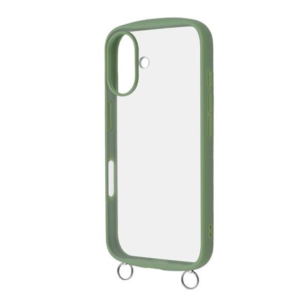 Ray Out レイアウト iPhone 16 Like standard Puffull 耐衝撃 バンパー ストラップ金具付き ハイブリッドケース カーキ