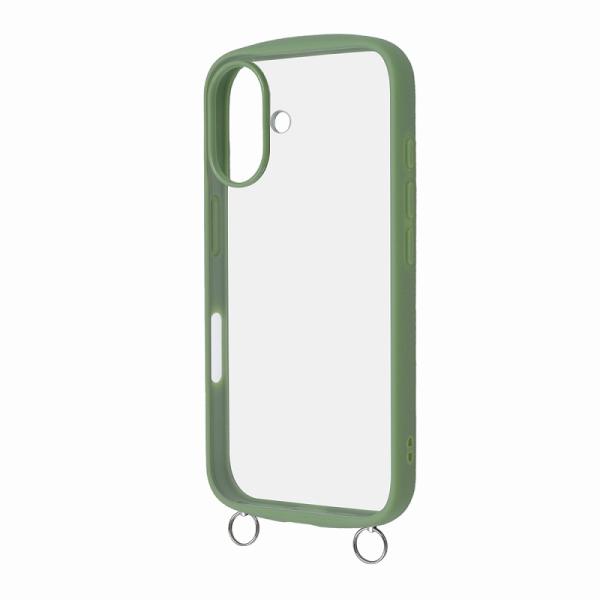 iPhone 16 Like standard Puffull 耐衝撃 バンパー ストラップ金具付き ハイブリッドケース / カーキ