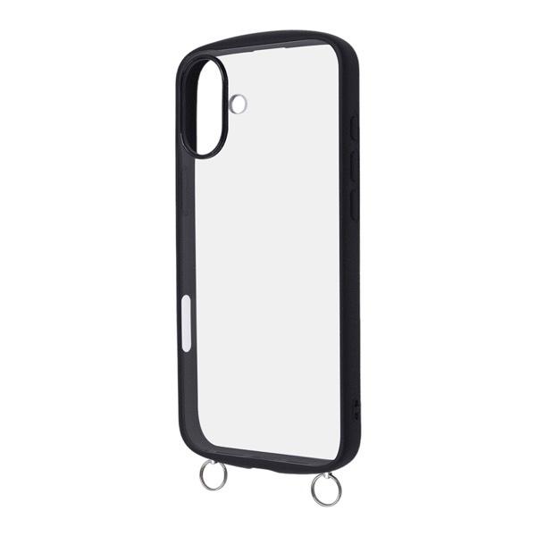 ストラップホール iPhone 16 Plus (2024年6.7インチ2眼) アイフォーン アイフォン アイホーン アイホン iPhone TPU ポリカーボネート ステンレス 背面ケース クリア ブラック
