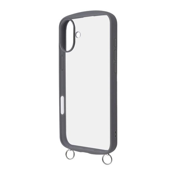 Ray Out レイアウト iPhone 16 Plus Like standard Puffull 耐衝撃 バンパー ストラップ金具付き ハイブリッドケース グレー