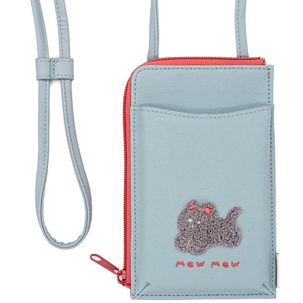 ピッコロット スマホポーチショルダー ねこ 894857 サガラ刺繍 財布 グレー セール・ラッピング不可