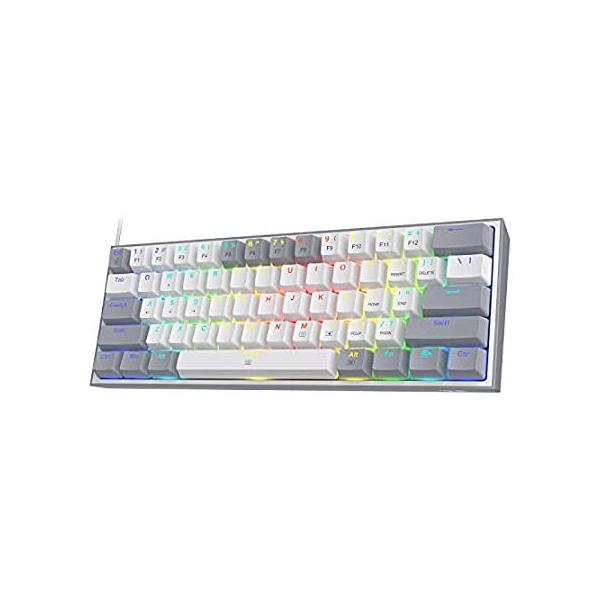 Redragon キーボード K617 Fizz 60%有線RGB ゲーム 61キーコンパクトメカニカルキーボード ホワイト&グレーの混合キーキャップ