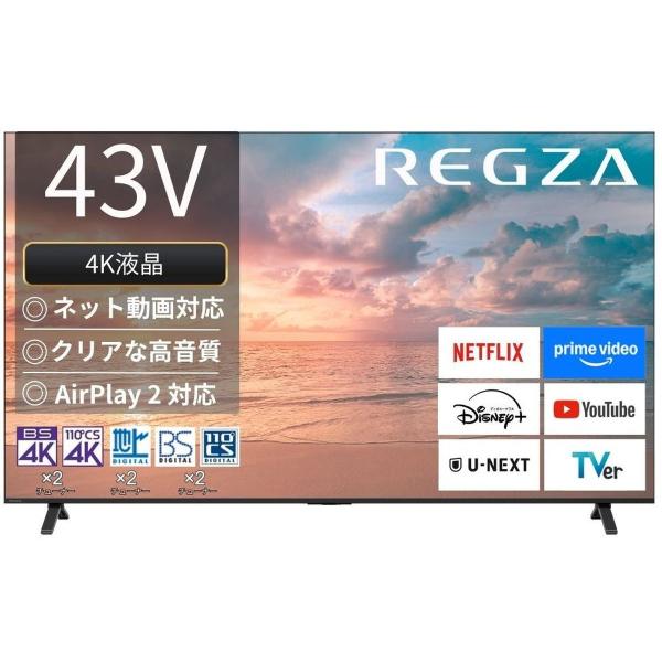 - 【返品種別A】□「返品種別」について詳しくはこちら□「おひとり様1点まで」2025年10月 発売メーカー保証期間 1年この商品は、お届け時に標準セッティング(設置)作業を無料で行います。 (弊社サービスエリアAエリアのみ)サービスエリアの確認はこちら※配送のみ(設置をご希望されない)場合は、別途メールにてご連絡ください。B〜Dエリアで、セッティング(設置)をご希望の場合は、対象エリアのセッティング料金を「買い物かご」へ入れて下さい。【テレビセッティング料金】>> ・Bエリア ・Cエリア ・Dエリア▼今お使いのテレビのリサイクルをご希望の場合Aエリアの方は、下記のリサイクル料金も『買い物かご』に入れてください。リサイクルを希望されるテレビのメーカーや種類によって料金が異なります。B〜Dエリアの方は、商品を「買い物かご」に入れる際に「リサイクルを希望する」を選択してください。リサイクル・収集運搬料は、現地で現金支払いになります。(リサイクル・収集運搬料の料金一覧はこちらでご確認ください)[リサイクル料] [弊社サービスエリア Aエリア]ブラウン管テレビご希望の方は「コチラのページ」からどうぞ[リサイクル料][弊社サービスエリア Aエリア]液晶・プラズマ・有機EL ご希望の方は「コチラのページ」からどうぞ【ご購入前に必ずご確認下さい】■離島、山間部及び一部の遠隔地はご注文をお受けできません。■B〜Dエリアはお届けまでに追加の日数をいただく場合があります。■ご注文はお1人様1台までとさせていただきます。複数台のご購入はご遠慮ください。■転売目的や同一住所で名前を変えてのご注文など、同一と思われるお客様からの複数のご注文は、取り消しさせていただく場合がございますのでご了承ください。地デジもネット動画も、高画質で楽しめる 4K液晶レグザ エントリーモデル◆高画質と快適な操作性を兼ね備えたエンジン「レグザエンジンZR」地デジやBS・CS放送はもちろん4K放送やネット動画も、大画面で視聴しても高精細でなめらかに自然な高画質で楽しめる、さらに進化した新エンジン。高速レスポンス、進化したノイズリダクション、快適な操作性を備えました。◆あざやかで高精細な映像世界へ「全面直下型LEDパネルモジュール」クラスを越えて、さまざまなコンテンツもあざやかに高コントラストで楽しめる、新開発レグザ専用 直下型バックライトを採用。リビングでも快適な映像で視聴が可能。◆バランスの良いクリアな高音質で映像体験を心地よく「レグザパワーオーディオシステム」低音から高音まで、バランスの良い迫力のあるサウンドを再現します。◆部屋の環境に適したサウンドを自動で設定「オーディオキャリブレーション」レグザが発するテストトーンを、リモコンのマイクで測定。視聴環境に合わせて音響特性を自動調整し、適切な設定で臨場感あるサウンドを楽しめます。◆今話題のさまざまなネット動画が楽しめる「ネット動画」お好みの動画配信サービスから、話題の映画、ドラマ、アニメなどをテレビの大画面で楽しめます。◆モバイルデバイスのコンテンツを、レグザの大画面で楽しめる「Apple AirPlay 2、スクリーンミラーリング」スマートフォンやパソコン・タブレットなどで表示している動画や写真、画面などをテレビに表示し、大画面で楽しむことができます。◆好きなタレントの出演番組もすぐに見つかる「ざんまいスマートアクセス」予約録画やおまかせ録画した膨大な番組から、お気に入りのタレントの出演番組や、好きなジャンルの番組を自動で分類。さらに、あなたがよく見る番組をAIが学習しておすすめ。自分では気づかなかった番組にも出会えます。◆あなたの好みに合わせてレグザが自動で録画「おまかせ録画」「みるコレ パック」で推しのアイドルグループやアーティスト、アニメ等の番組のジャンルや「話題の番組」「深夜に見たいバラエティ」など、お好きなテーマをおまかせ録画に登録しておくだけで自動で録画。※USBハードディスク(別売)接続時に対応しています。◆高速のレスポンスでゲームをより快適に「瞬速ゲームモード」ゲームに必要な高画質処理を行いつつ、画像処理の遅延時間を、驚きの約0.83msecに短縮。対戦格闘ゲームなどボタンを押すタイミングが重要なゲームで快適な操作を実現するとともに、美しく迫力のある映像でゲームの魅力を存分に楽しむことができます。※1080p/60Hz、1440p/60Hz、4K/60Hz入力時の映像遅延時間(パネルによる遅延を除く)。 映像メニュー「ゲーム」選択時。HDMI入力端子1〜3まで。■ 仕 様 ■画面サイズ:43V型本体寸法(約):幅96.2×奥行22.6×高さ60.5cm(スタンド含む)本体質量(約):6.5kg(スタンド含む)画素数(水平×垂直):3840×2160 [4Kパネル]パネル方式:4K液晶パネルパネルモジュール:全面直下型LED倍速対応:−HDR対応:○(HDR10/HLG HDR/Dolby Vision/HDR10+)チューナー数・BS4K/110度CS4K:2・地上デジタル:2・BS/CSデジタル:2無線LAN(内蔵):○(IEEE802.11a/b/g/n/ac)Bluetooth対応:○USB外付けハ