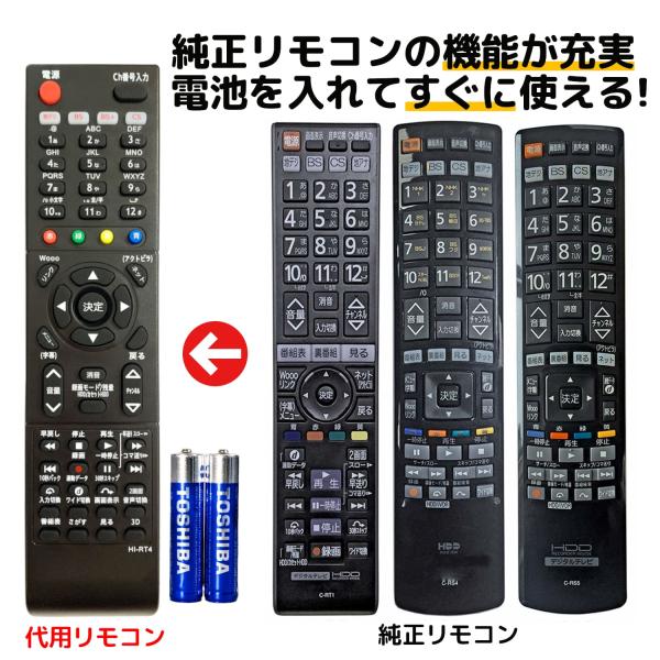 互換品 日立 Wooo テレビ リモコン 電池付き C-RT4 C-RT6 C-RT1 C-RS4 C-RS5 C-RS1 C-RS3 C-RT2 C-RT3 HITACHI 互換 汎用性が高い 代用リモコン REMOSTA