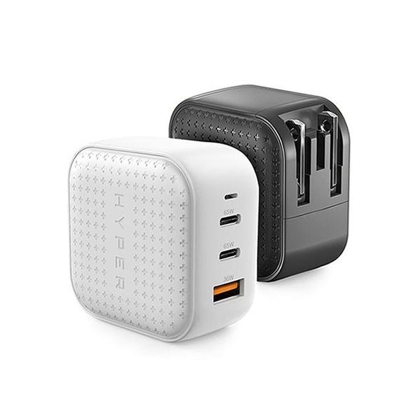 - ■製品情報 ・商品名:HyperJuice GaN 66W USB-C ACアダプタ ・対応デバイス:USB-Cポート、USB-Aポート対応デバイス ・ブランド:Hyper(ハイパー) ・販売元:株式会社ロア・インターナショナル(support@roa-international.com) ・原産地:中国 ・型番(Janコード/カラー):HP-HJ265BK(4570047544776/ブラック) HP-HJ265WH(4570047544783/ホワイト) ・素材:ポリカーボネート、ABS樹脂 ・重量(サイズ):113g(5.3x5.3x3cm) 【保証期間】購入日から1年間(付属を除く) 【注意事項】 1. 急速充電は急速充電対応のデバイス、ケーブルを使用した場合のみ可能です。2. 多数のデバイスを同時充電する際は、出力先が増えるため個々のデバイスの充電時間は多少長くなる場合があります。3. デバイスの合計出力は66Wまで、1つのポートの最大出力は65Wまで対応します。 【使用上の注意】 ●本製品は高出力ACアダプターです。給電中に熱を発して、筐体やプラグなどが熱を帯びることがあります。内部温度が設定温度以上になると、センサーが働き給電を停止します。給電が停止した場合は、しばらく使用を中止してください。また、風通しの良い場所へアダプターを移動して、アダプターが放熱しやすい環境に設置しなおしてください。●本製品は、全ての機器に対応することを保証するものではありません。●付属の変換プラグは本製品専用です。他製品には使用しないでください。●ご自身での分解・修理はおやめください。●熱源の近くでの使用や、火中への投入はおやめください。●海中など水の中への投げ入れ、濡れた状態での使用はおやめください。●各デバイスの正規のケーブルを使用し、充電要件に従ってお使いください。 故障の確認ができない場合、または不正な分解によって生じた場合は保証対象外となります。 【製品保証】 ●製品保証については、購入日から1年間有効です(付属品を除く)。 修理後の保証期間は、交換によって対応させていただいた場合も含め、元の保証期間の残存期間を適用します。 ご使用の前に取扱説明書をよくお読みください。 不適切な取扱いに起因する損害または二次的損害については、一切責任を負いかねますのであらかじめご了承ください。 ●保証書内の所定様式に記入して大切に保管してください。●製品の故障が発生した場合は、販売店もしくはカスタマーセンターにご連絡ください。●本説明書の内容及び製品のデザインについては、よりよい品質のために事前予告なしに変更することがあります。●製品の保証に関しましては日本国内のみ有効となります。●保証書の購入年月日、購入店舗、お客様情報(お名前、ご住所)が記載されていない場合、記入内容を任意に修正した場合、保証書を紛失された場合には保証の対象外になります。予めご了承ください。●使用上の誤り、または改造、不当な修理による故障は対象外になります。●火災、地震、水害、落雷、その他の天災、公害等による故障は対象外になります。●注意・警告事項に該当する操作、使用方法等による故障や損傷または身体に及ぶ障害等は対象外になります。●初期不良でない故障や損失、紛失に関しては保証対象外となります。●充電池の消耗に関しては保証対象外となります。 ※ディスプレイ、モニターの仕様によって実際の色とやや異なって見える場合があります。 メイン画像はイメージです。実際の商品のお色は商品単体の画像をご確認下さい。 ※製品の仕様、デザインは改良などのため事前予告なしに変更する場合があります。 ACアダプタ、コンセント、電源コード、Apple機器対応、MacBook電源、スマホ充電、iPhone対応、iPad対応、USB TypeC PD対応、66Wアダプター、Power Delivery、Quick Charge、USB 充電器、ACアダプター、急速充電、Power Delivery搭載、電源ケーブル、PSE認証、Macbook Pro 対応、USB A、海外、220V対応、グローバルコンセント対応HyperJuice GaN 66W USB-C ACアダプタは、世界最小クラスの66W(2x USB-C/1xUSB-A) GaNアダプタです。 PD3.0に対応した2つのUSB-CポートとQC3.0対応のUSB-Aポート、合計3つのポートで合計最大66Wの充電が可能です。各国の主流なコンセントに合わせた変換器も付属し、海外旅行や出張の際にも活躍します。 世界最小クラスのパワフルな66W GaNアダプタ 窒化ガリウム(GaN)半導体材料による高電圧の制御とスイッチングの高速化で実現した、世界最小クラスの66W ACアダプタです。新しいGaN半導体技術により、従来の同機能の充電器よりも50%もの小型化に成功。また、より速く・より効率的な充電が可能となりました。 急速充電対応の3つのポート 最大出力65Wの2つのUSB-Cポート(Power Delivery 3.0対応)と、最大36WのUSB-A(Quick Charge 3.0対応)ポートを搭載。これらの3つのポートを十分に活用できる、合計66Wの高出力仕様です。 ※1つのポートの最大出力は65Wまで対応します。 ※ 急速充電には本製品のほか、急速充電対応のデバイス、ケーブルが必要です。 3台同時充電が可能 たったひとつの充電器で、最高3台まで同時に充電可能です。 MacBook, iPad, iPhone, Apple WatchやAirPodsなど