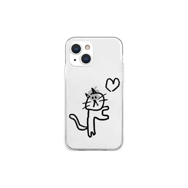 AKAN ソフトクリアケース for iPhone 13 mini ネコハート 仕入先在庫品