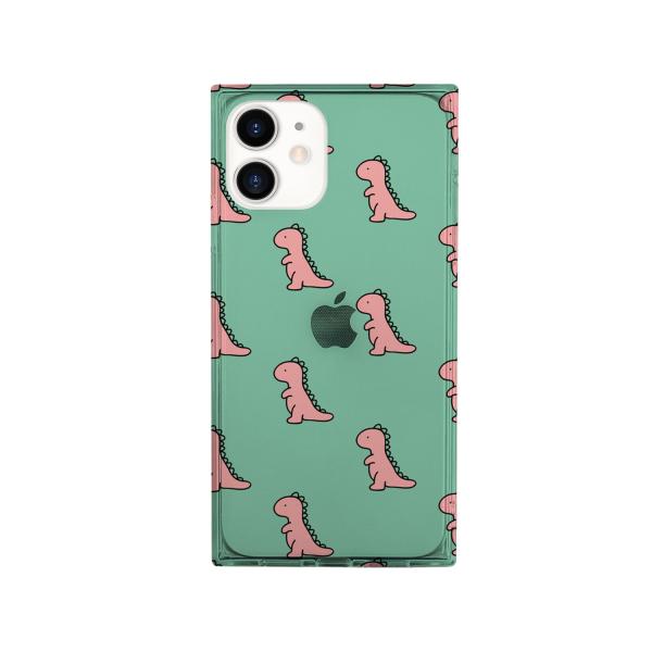 AKAN iPhone 12 mini ソフトスクエアケース ダイナソーパターン グリーン 仕入先在庫品