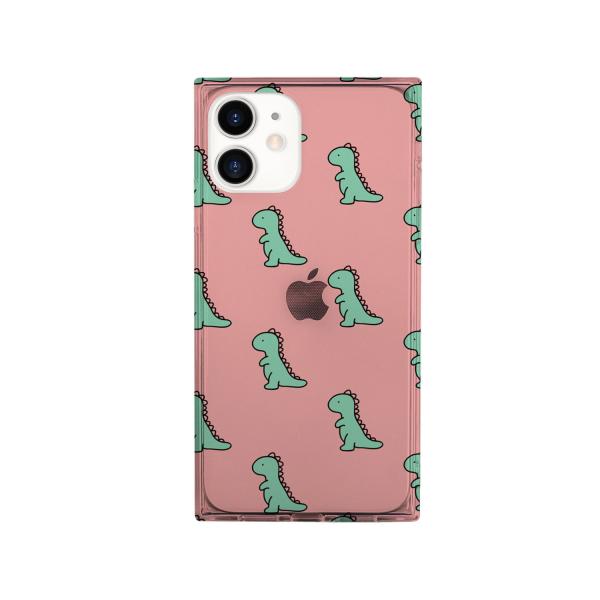 AKAN iPhone 12 mini ソフトスクエアケース ダイナソーパターン ピンク 仕入先在庫品
