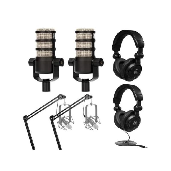 Rode Microphones 2x PodMic ダイナミックポッドキャスティングマイクバンドル ブロードキャストアーム内蔵スプリング付き H&A スタジオモニターヘッドホン XLR