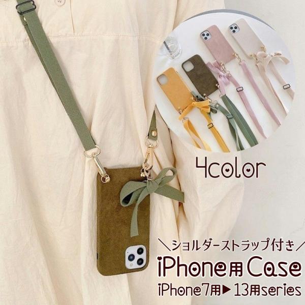 iPhone用ケース スマホケース カバー リボン 耐衝撃 落下防止 背面保護 傷防止 ショルダーストラップ 斜めがけ 肩掛け 首掛け ネックストラッ