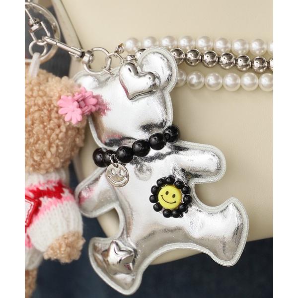 商品名:パールチャーム付き フェイクレザー ベアキーホルダー