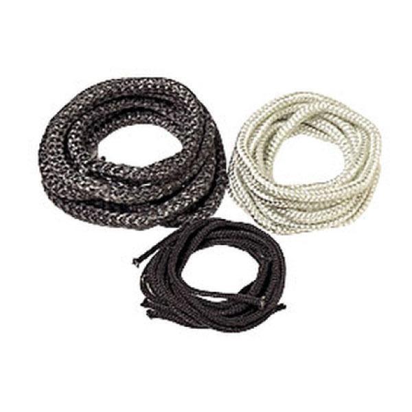 ストーブのドアやガラス周り、ダンパー部分の気密性を高めるためのグラスファイバーロープ。