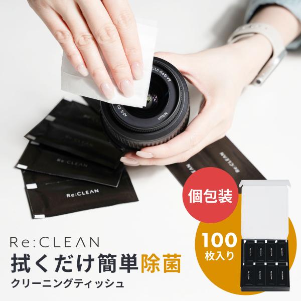クリーニングティッシュ Re:CLEAN リクリーン 100枚入り個装 速乾 ウェットタイプ カメラ 手入れ カメラ用 メンテナンス 掃除 カメラクリーニング