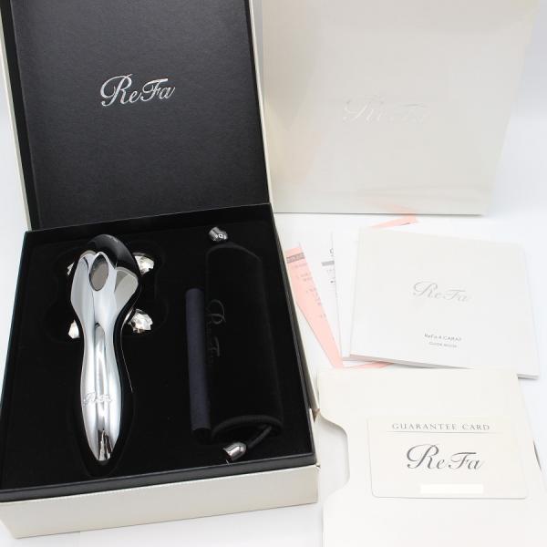- 製品について ブランド リファ(ReFa) アイテム MTG ReFa 4 CARAT リファフォーカラット RF-FC1932B プラチナ電子ローラー 品番 RF-SC1932B 材質/成分表示 ABS、アクリル、ステンレス、ナイロン、シリコーンゴム、アルミニウム、プラチナ 重量 約205g サイズ 約70mm×168mm×69mm メーカー 株式会社MTG 広告文責 株式会社ルシオン商品詳細 ●4つのローラーが連続的につまみ流すダブルアップニーディング● ReFa 4 CARATは流れるようなエステティシャンのハンドテクニックを再現。 肌を離すことなく、「連続的につまみ流す」動きを再現したダブルアップニーディングで、 ゆるみやすい肌を引きよせ、広く、深く、引き締めます。 【ダブルインパクト構造】 前後に配置されたそれぞれのローラーの入射角度を細かく設定したことで、より効率的に肌を引きよせ、 【連続して肌をつまみ流すことを可能にしました。また肌状態や部位によって縦・横の2方向へ使用できます。 【マイクロカレント】 エステティックでも大人気の「マイクロカレント」。【ReFaはソーラーパネルから光を取りこみ、微弱電流「マイクロカレント」を発生。 【クワトロドレナージュローラー】 4つの特殊形状のローラーを絶妙なバランス間隔で配置。1度のローリングで複数の加圧スポットを生み出し、連続的に肌を引き締めてくれます。 ※ドレナージュとはエステティシャンの流れる動きを表したものであり、人体への効果効能を表現したものではありません。 【防水構造】 JIS基準(IPX7相当)をクリアした防水構造。バスタブ内でもお使いいただけます。 【プラチナムコート】 デリケートな素肌に触れるものだからローラーの表面にはプラチナムコートを採用。 美しい輝きが長く続きます。 ガイドブック、専用ポーチ、クリーンクロス付 ※リニューアルに伴い、パッケージ・内容等予告なく変更する場合がございます。予めご了承ください