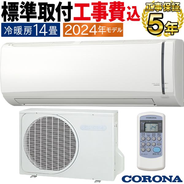 標準取付工事費込 エアコン おもに14畳 コロナ 2024年モデル リララ冷房専用 内部乾燥 抗菌 防カビ 単相100V RC-V4024R-W-SET