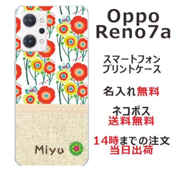OPPO Reno7A オッポ レノ7A らふら 名入れ スマホケース 北欧デザイン フラワー オレンジ
