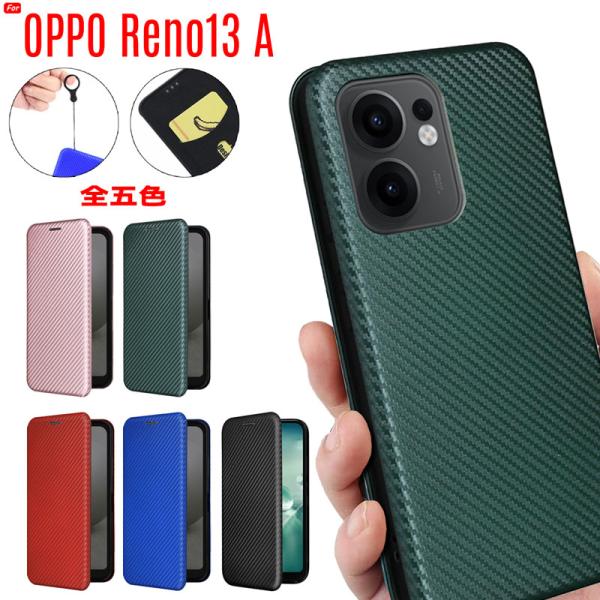 OPPO Reno13 A ケース 手帳型 炭素繊維風素材 ベルト無し マグネット内蔵 落下防止リングストラップ 付き 爆買