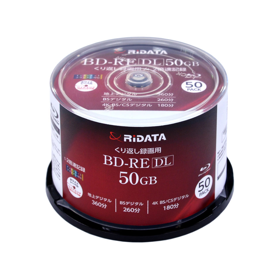 「MID:MEI-T01-001」RiDATA(ライデータ) BD-RE DL 録画用 50GB 1-2倍速 ワイドホワイトレーベル 50枚スピンドルケース (BE260EPW2X.50SP A)