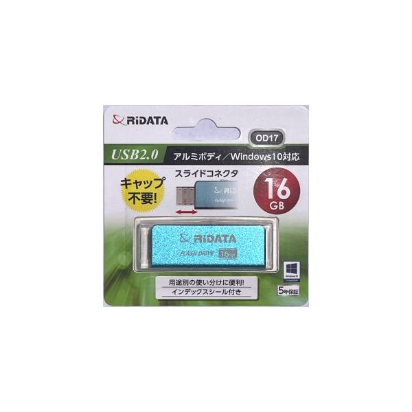 【メール便選択可】RIDATA USB-A OD17 16GB BL 2.0 アルミボディ スライド式